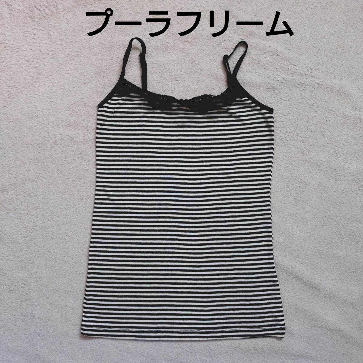 > プーラフリーム キャミソール ボーダー ストライプ レース フリル ビーズ インナー カットソー ジュン 上品 可愛い 大人 S M 伸縮性 新品