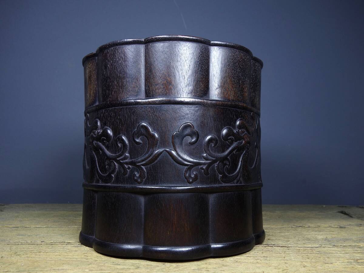 - 『館蔵珍品 血檀木製 細密彫 雙龍獻瑞紋 筆筒 文房具 書道品』稀少珍蔵品 古賞物 貴重物品 収蔵品 中国古美術 時代物 古董品