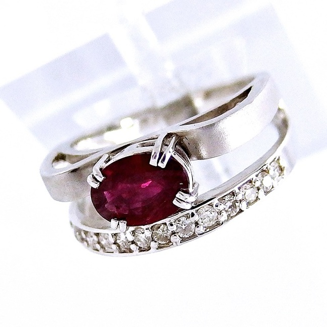 > Pt900 ★リング ルビー0.85ct ◇ダイヤ ●11.5号 ◆ソーティング付【中古】 /s21654/10004724