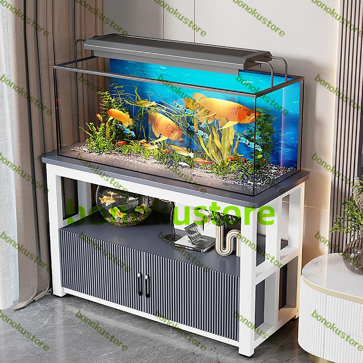 - 水槽スタンド 水槽棚 二段 扉付き キャビネット付き 大容量ストレージ 水槽棚ラック 水槽設置台 丸い角 水槽置き台 木製 (60x35x70cm)