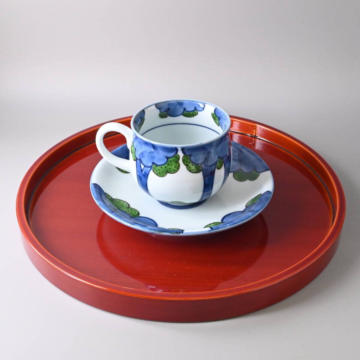 - 113301 館林源右衛門 染錦 大樹 カップアンドソーサー 一客 口径7cm 高6cm 食器 コーヒー 喫茶 店舗什器