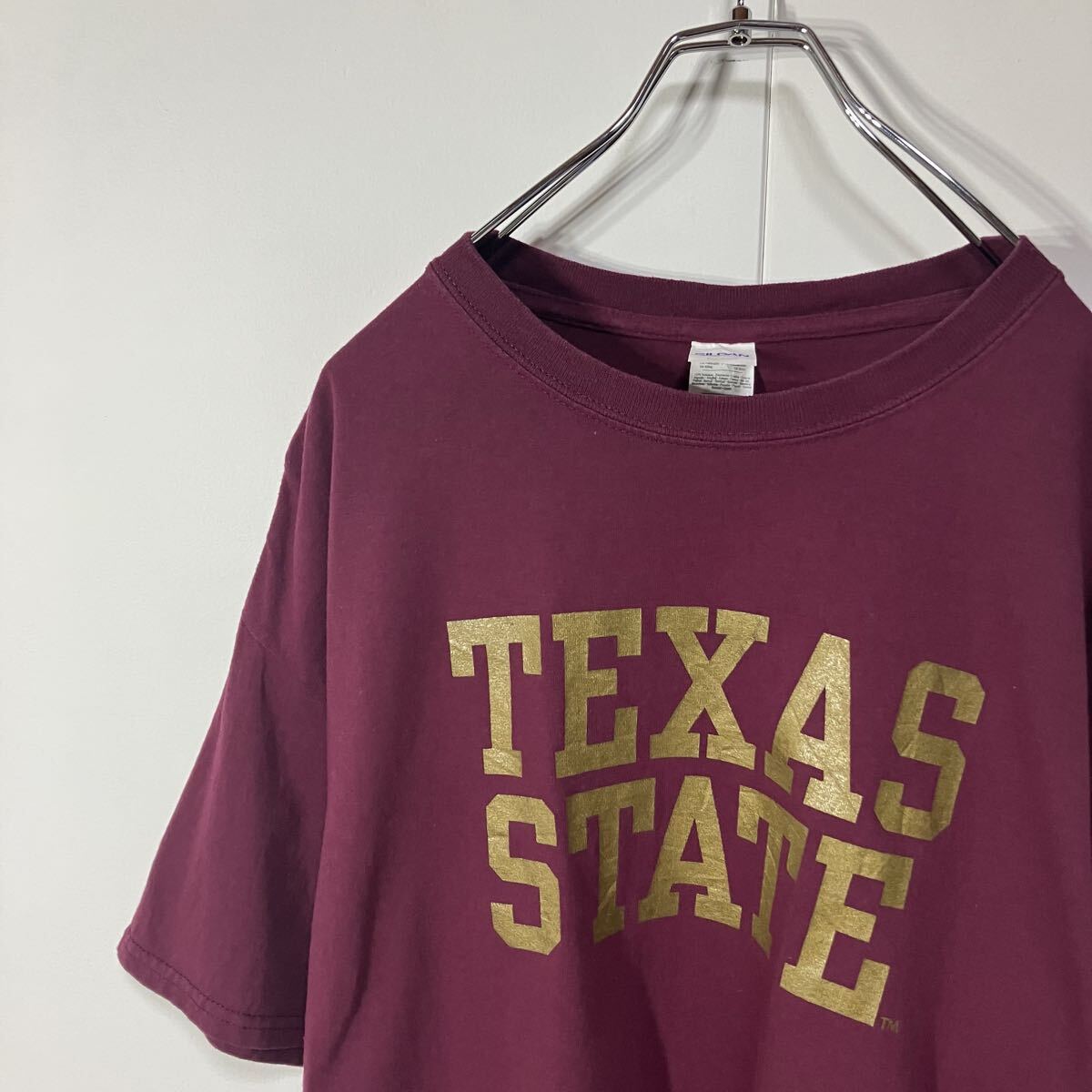 - 古着 英字 プリント クルーネック 半袖 Tシャツ 大きいサイズ ヴィンテージ感 ワイン XL