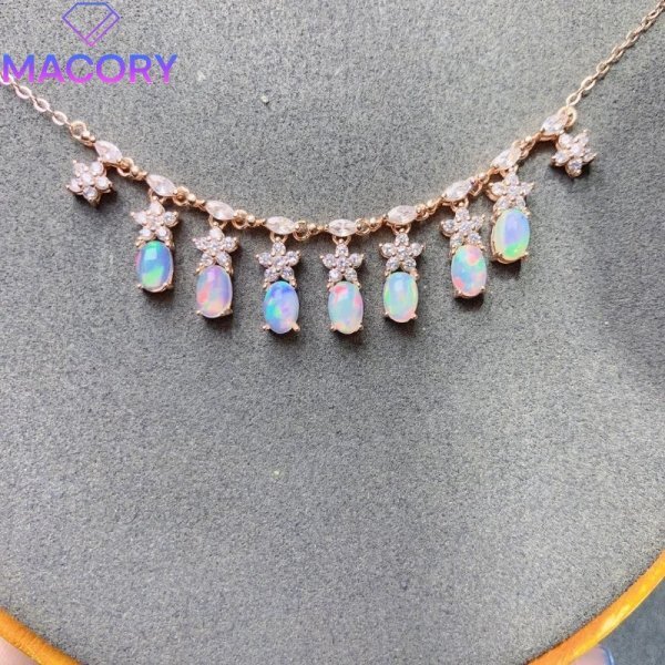 > ナチュラルオパールネックレス、4* 6mm 、925シルバー、鑑別付き、残り時間4日までに最初に入札すると開始価格で購入可能 Ma
