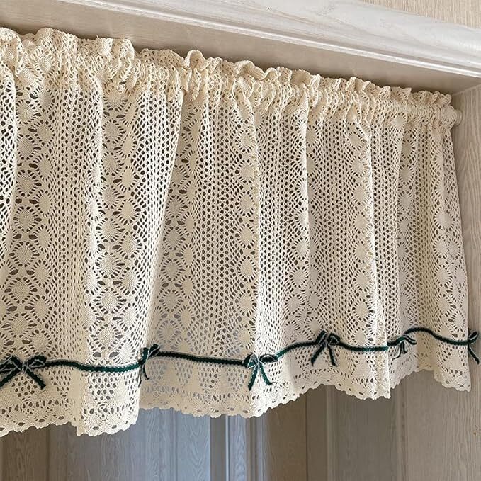 - 【1枚入り】【横幅100cm×丈45cm】リボン付き レース カフェカーテン 生成り