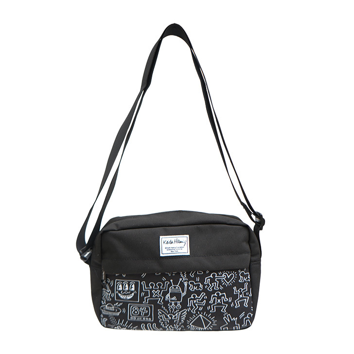 KeithHaring(キースヘリング)横型ショルダーバッグ商品番号:15805キース・ヘリングは、アンディ・ウォーホルやジャン・バスキアなどと同様に、1980年代のアメリカ美術を代表するアーティストです。KeithHaring/キース・ヘリングポップで独創的なアートワークは、世界中で様々なアイテムに用いられております。そんなキース・ヘリングから横型ショルダーバッグが登場!コンパクトで最低限の物が入るので、普段使いに便利なアイテムになっています♪