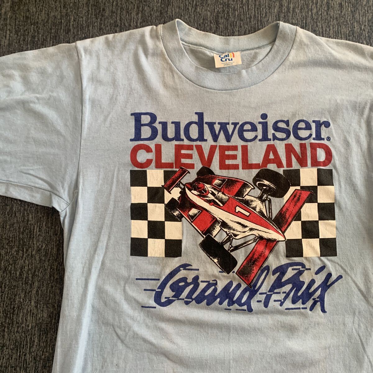 - ビンテージアメリカ古着 「Budweiser CLEVELAND Grand Prix」半袖Tシャツ Mサイズ アメリカンレースインディ バドワイザー世田谷ベース