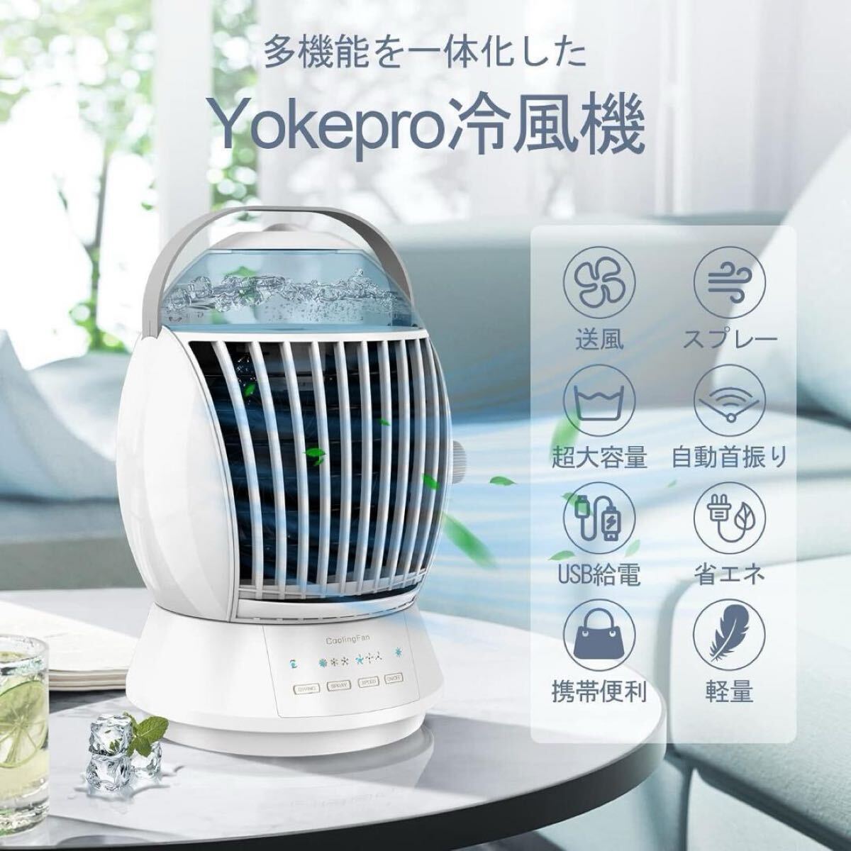 - 冷風機 冷風扇 卓上クーラー一台4役 送風 冷却 加湿 スプレー冷却 熱中症と暑