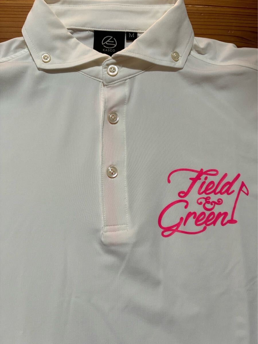 - 送料込み!!KASCO 半袖ポロシャツ 白 ホワイト Mサイズ GOLF ゴルフウェアー ピンクロゴ ボタンダウン キャスコ 半袖シャツ
