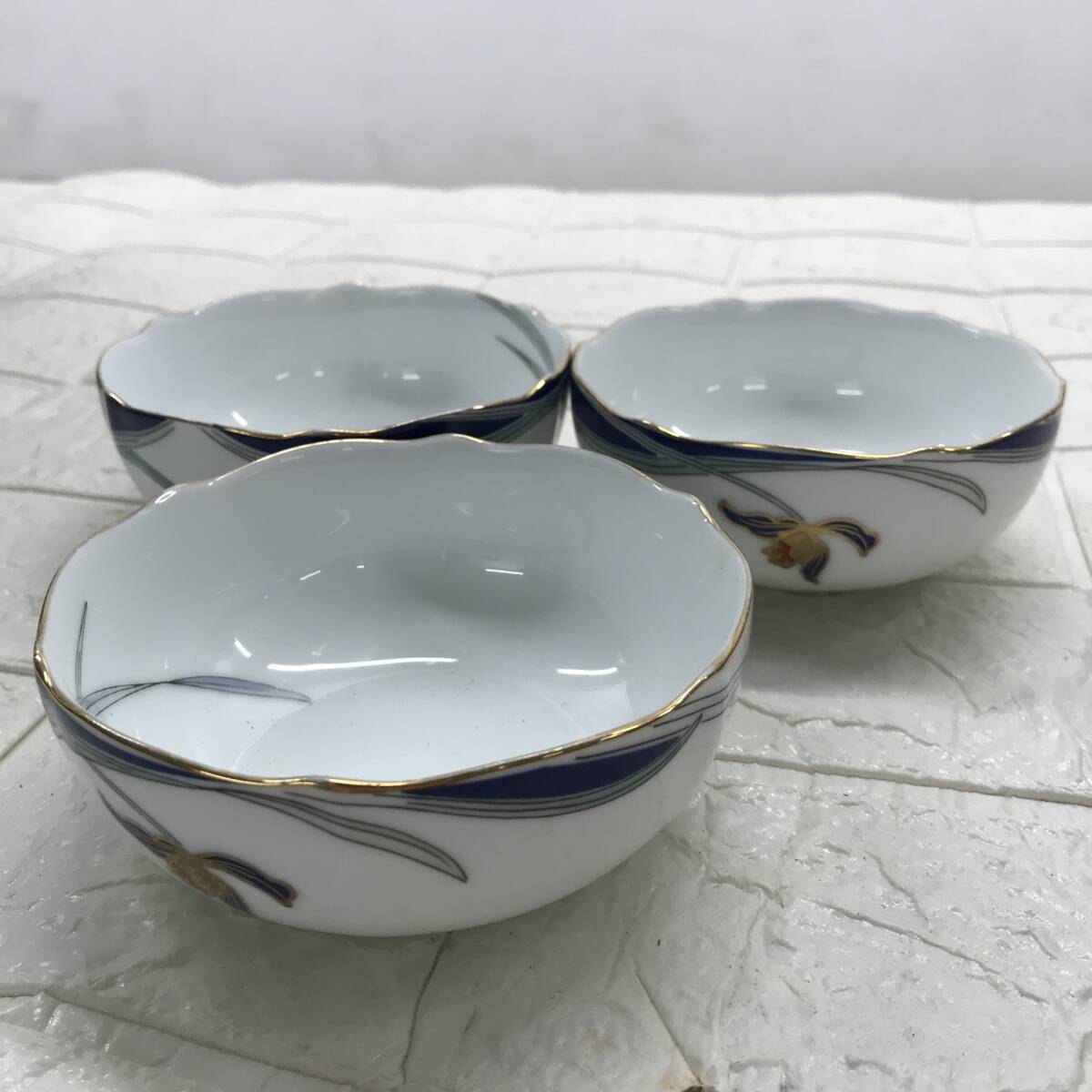★【在庫処分価格】小鉢 3点セット 藍の蘭 保谷謹製 サイズ約:直径10.5cm☆T8-295J