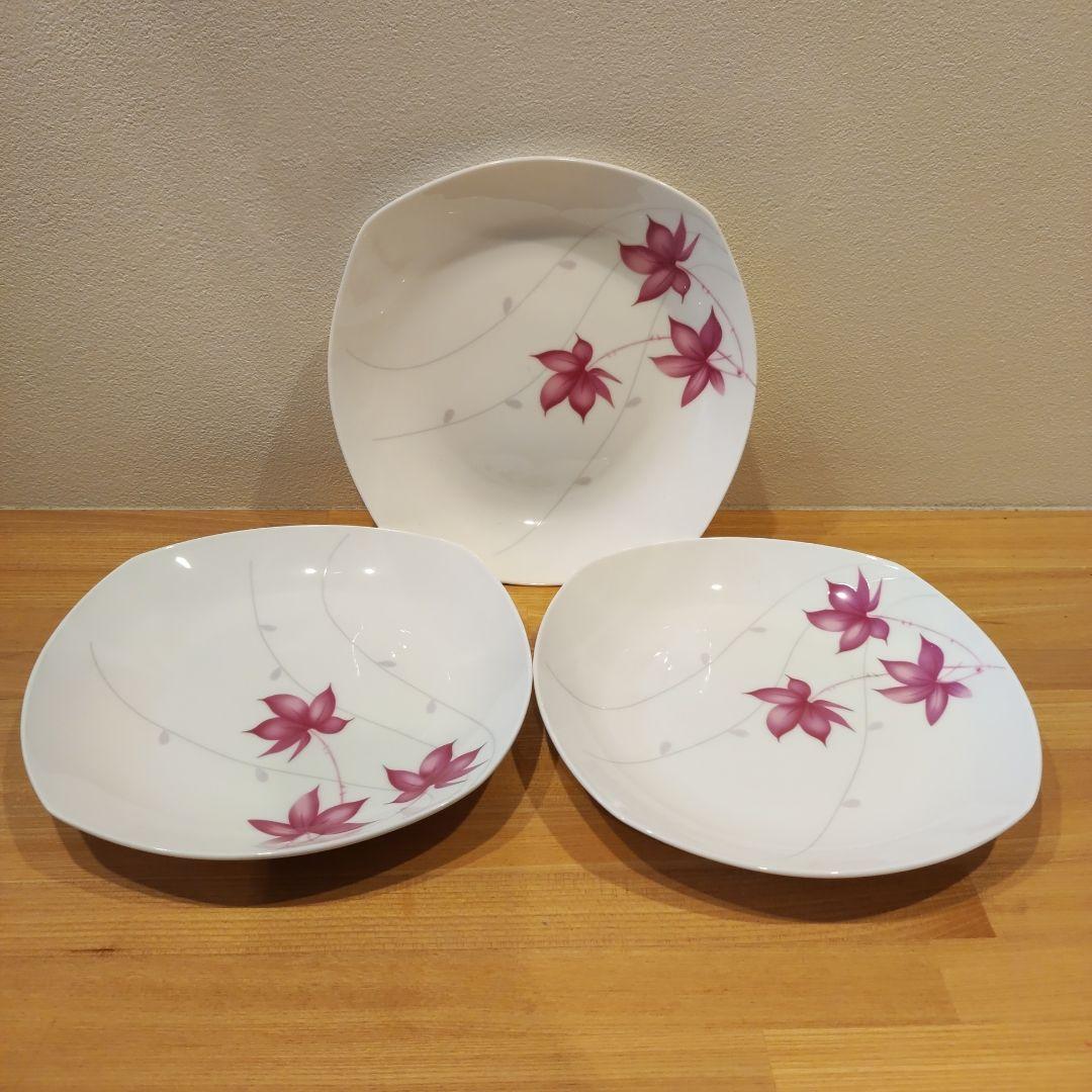 - 未使用品 景徳鎮 陶磁器 Bone china 花 皿 3枚 セット