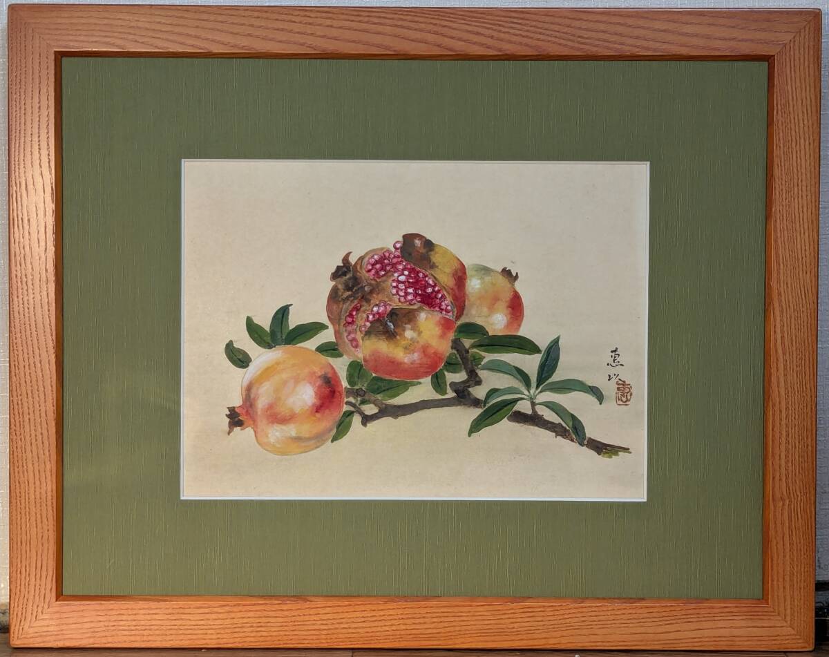- 【真作】絵画 中沢恵以 日本画4号 熟れざくろ 豊穣の実り 生命の輝き Y122