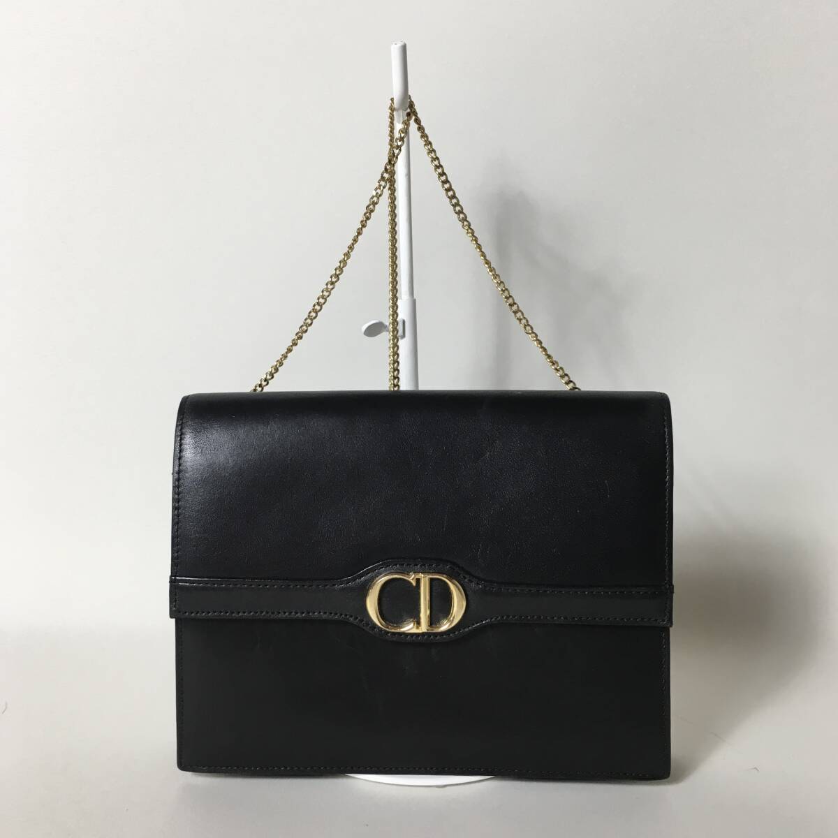 - 78B15|ディオール ショルダーバッグ レザー ブラック ロゴ金具 チェーン