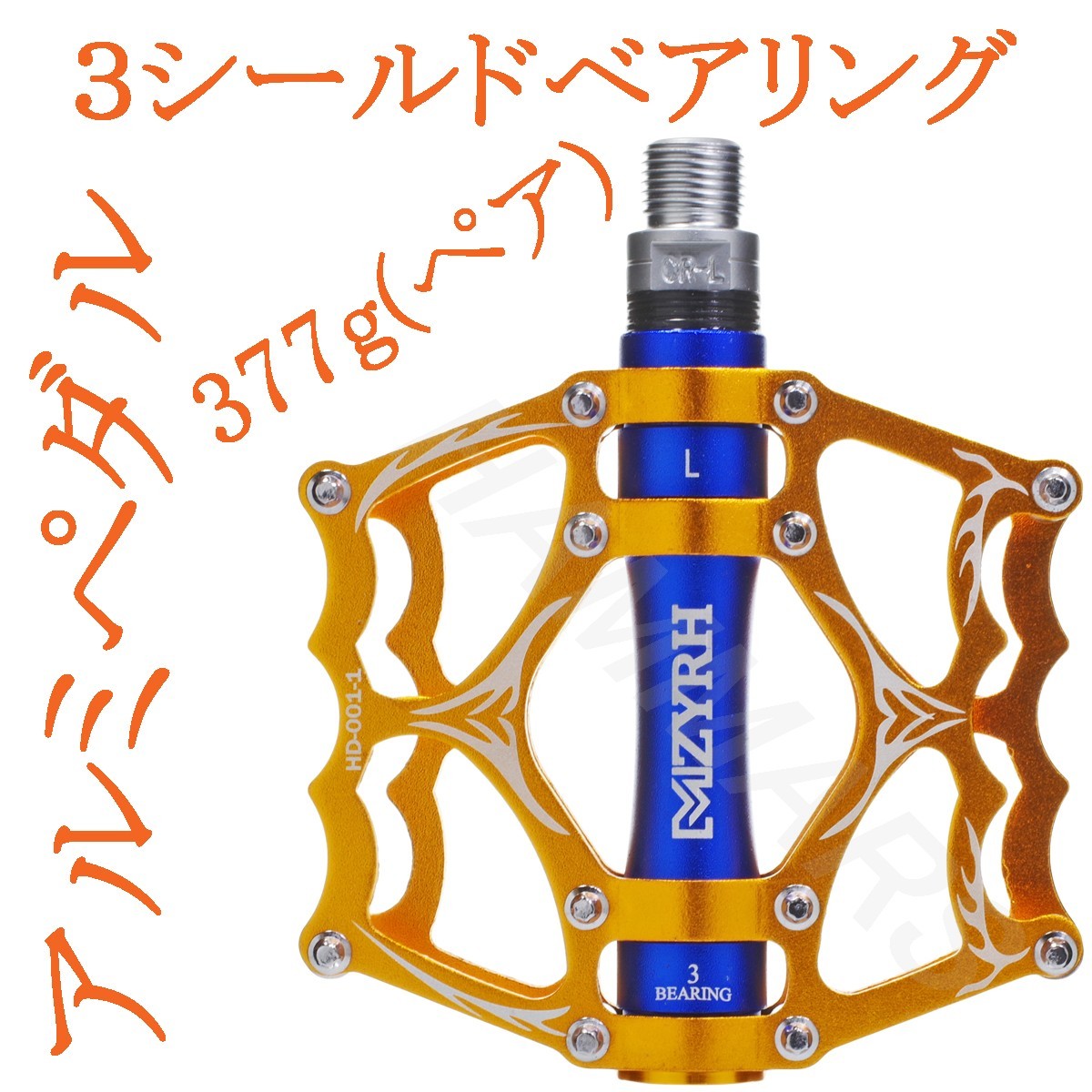 - 新品 アルミペダル 左右セット ベアリング3個搭載 ゴールド ブルー 【バルク品】 自転車 マウンテンバイク MTB クロスバイク HAMMARS 金色