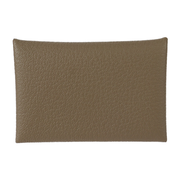 - 新品未使用展示品 HERMES エルメス カルヴィ カードケース シェーブル エトゥープ シルバー金具 名刺入れ W【本物保証】