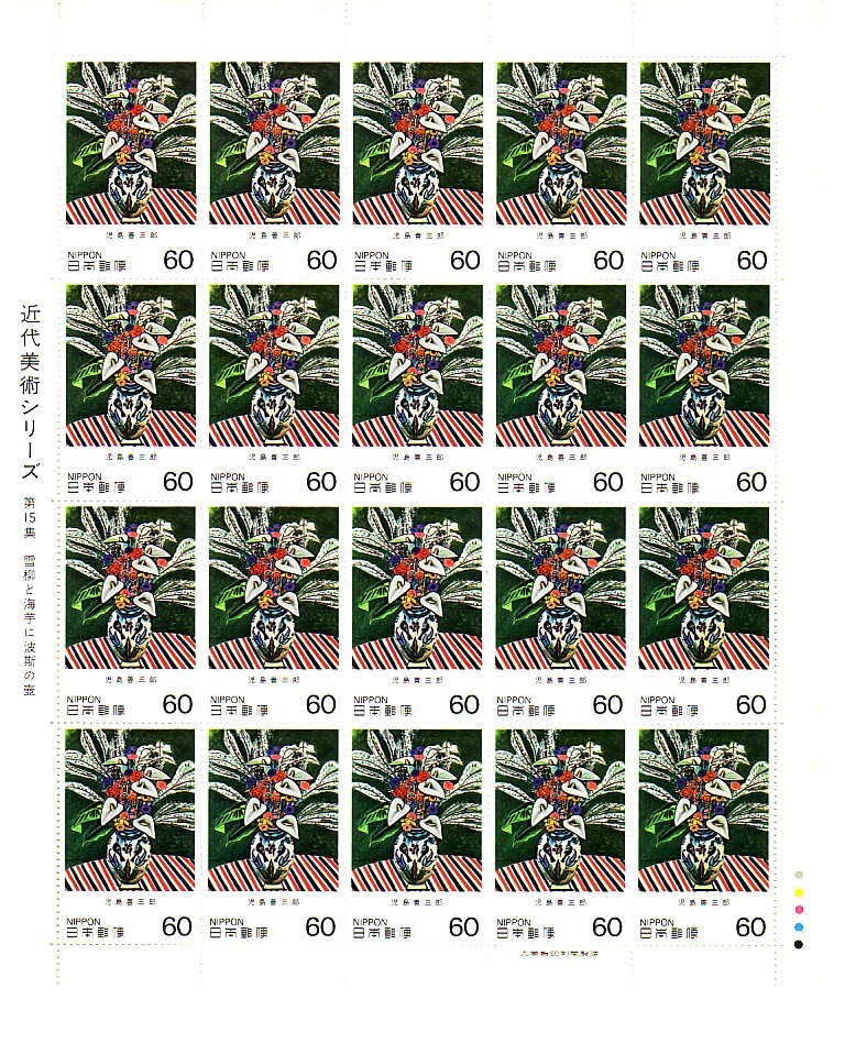 - 「近代美術シリーズ 第15集 雪柳と海芋に波斯の壺」の記念切手です