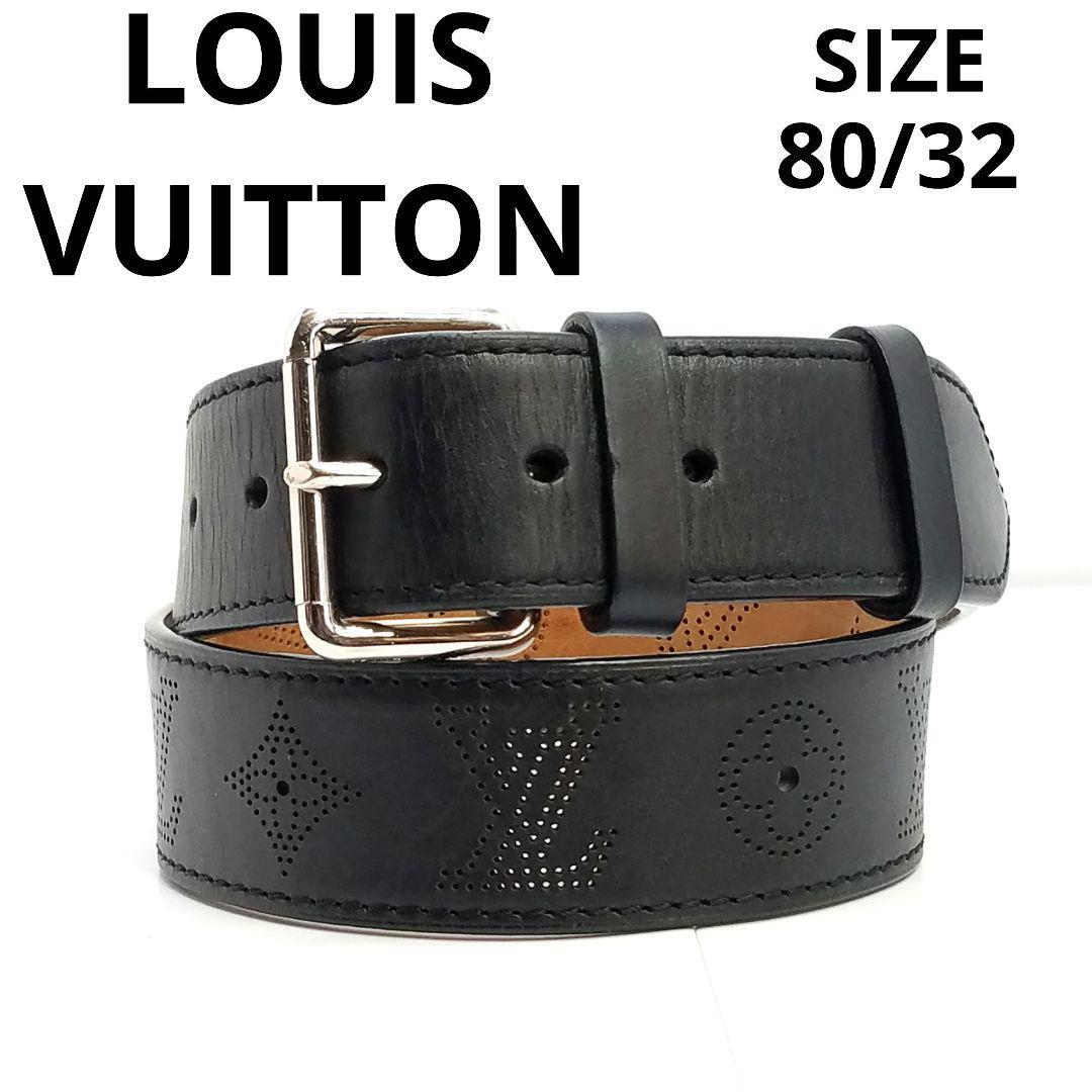 - Louis Vuitton ルイヴィトン サイズ80/32 ベルト M6931 マヒナ サンチュール パンチング モノグラム ブラック 黒 ノワール スペイン製