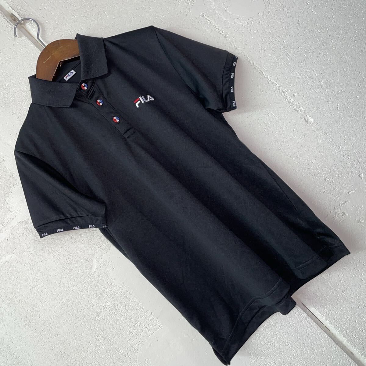- FILA吸汗速乾UVカット半袖ポロシャツ黒