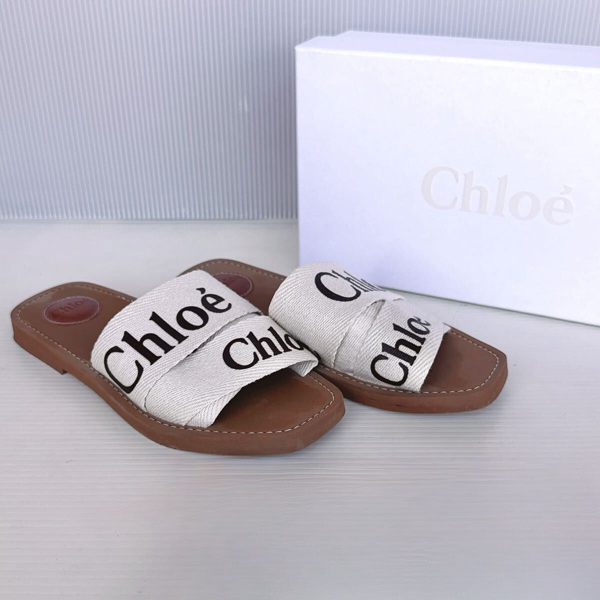 - CHLOE WOODY クロエ ウッディ ストラップ フラットシューズ スライドサンダル ロゴ入り ミュール レーディス シューズ 靴 38