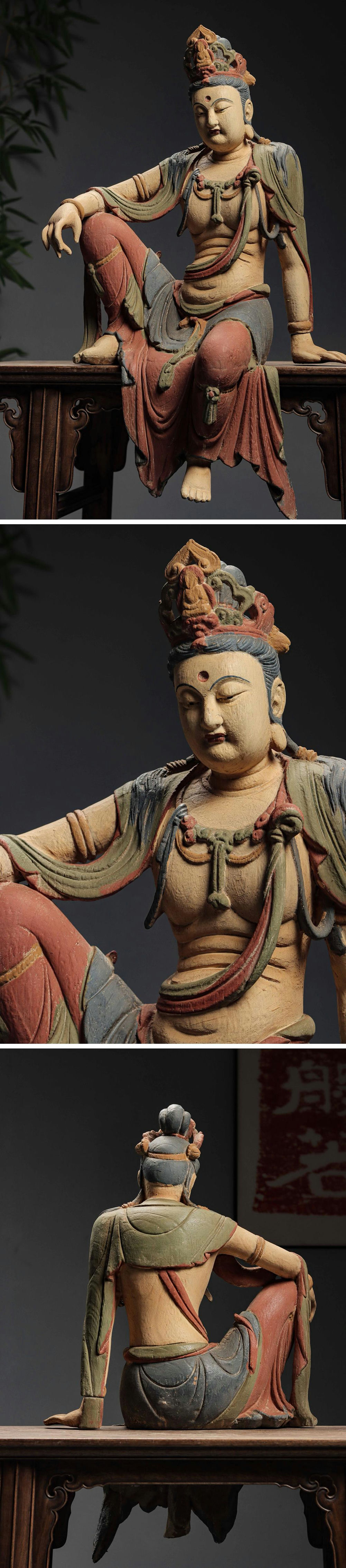 - ▼渡鶴羽▼R9614宋時代 楠木木彫彩絵 自在観音造像 細工彫刻★仏教古美術★仏像★細密細工★廃寺旧蔵★廃寺買出品