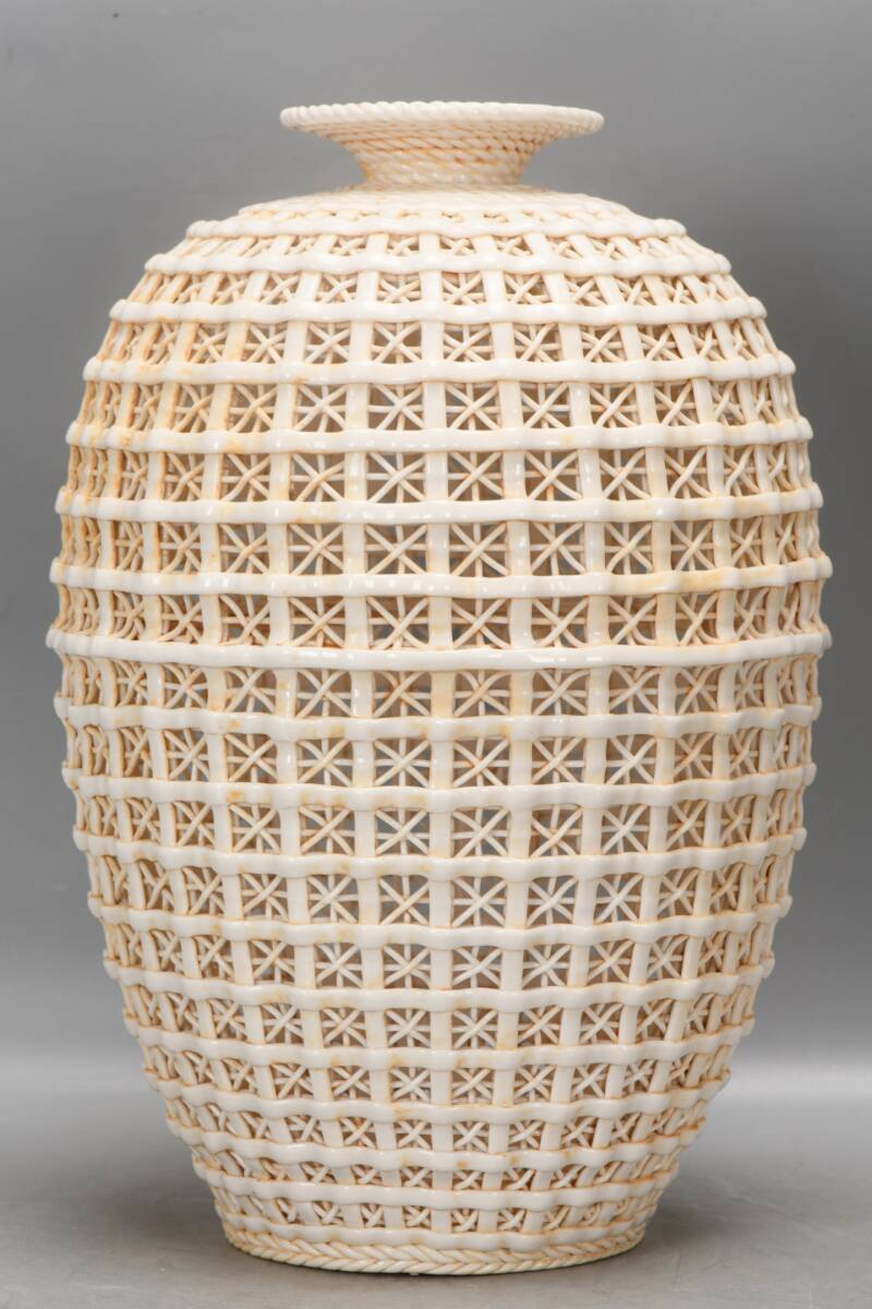 > 時代旧蔵 明時代 永楽年制 徳化透かし花瓶 古陶磁器 高さ31 cm 口径9 cm 腹径21 cm 底径12 cm 珍品旧蔵 古賞物 時代物 823