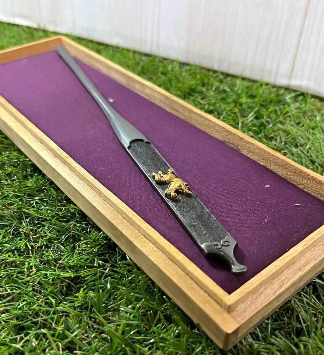 - 【小柄】古金工 肉厚彫 馬 笄(こうがい)刀装具 拵 小柄 小刀 刀装具 時代武具 銘 時代物 在銘 時代武具