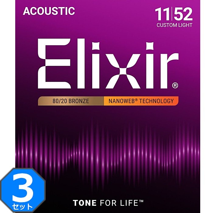- 3セット Elixir Nanoweb #11027 Custom Light 011-052 80/20 Bronze エリクサー コーティング弦 アコギ弦