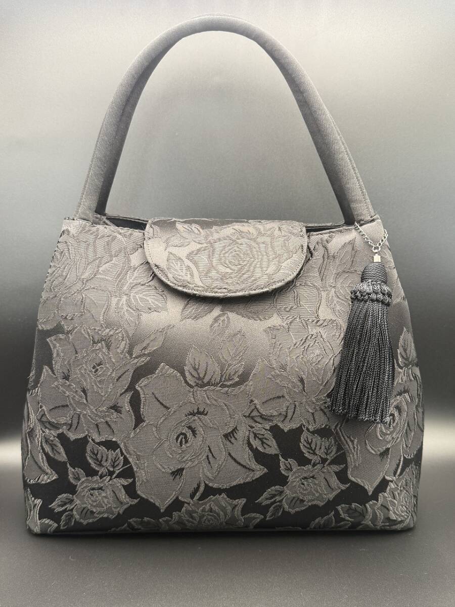- (26496)【美品】 IWASA/イワサ ハンドバッグ フォーマルバッグ 花柄 刺繍 冠婚葬祭 ブラック 現状品