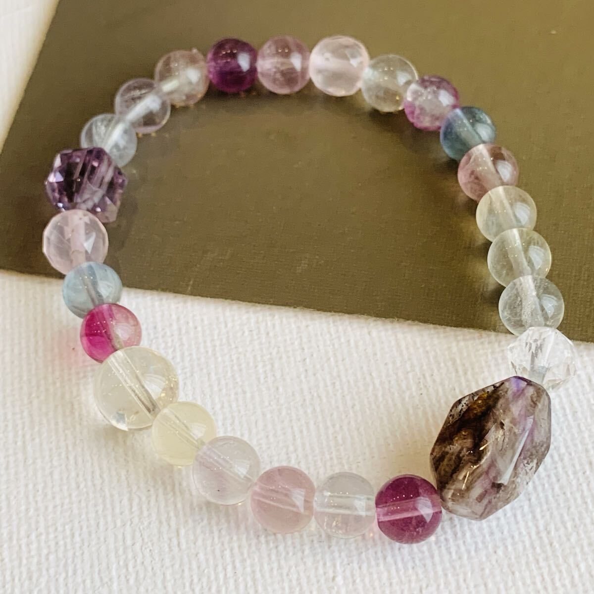 - ブレスレット 天然石6種のブレスレット アメジストエレスチャル シトリン フローライト ローズクォーツ 【K203】パワーストーン