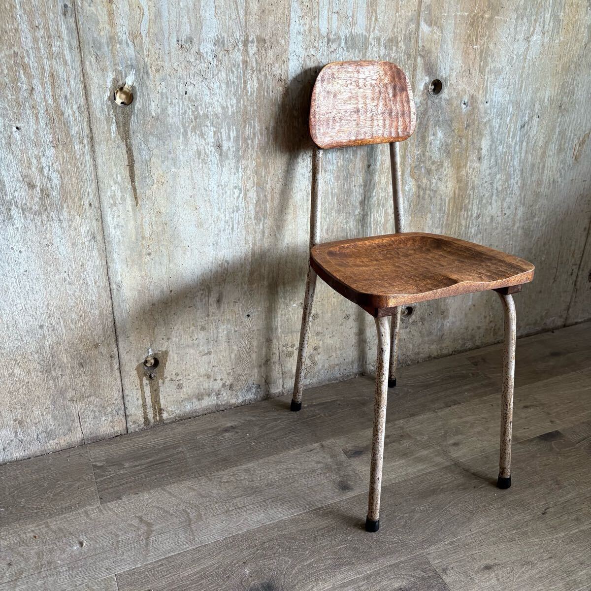 - ヴィンテージチェア 古材×パイプ リメイク 子供椅子 学校椅子 白 現状品
