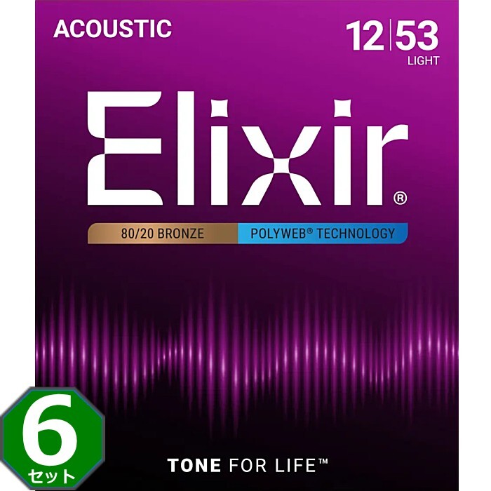 - 6セット Elixir Polyweb #11050 Light 012-053 80/20 Bronze エリクサー コーティング弦 アコギ弦