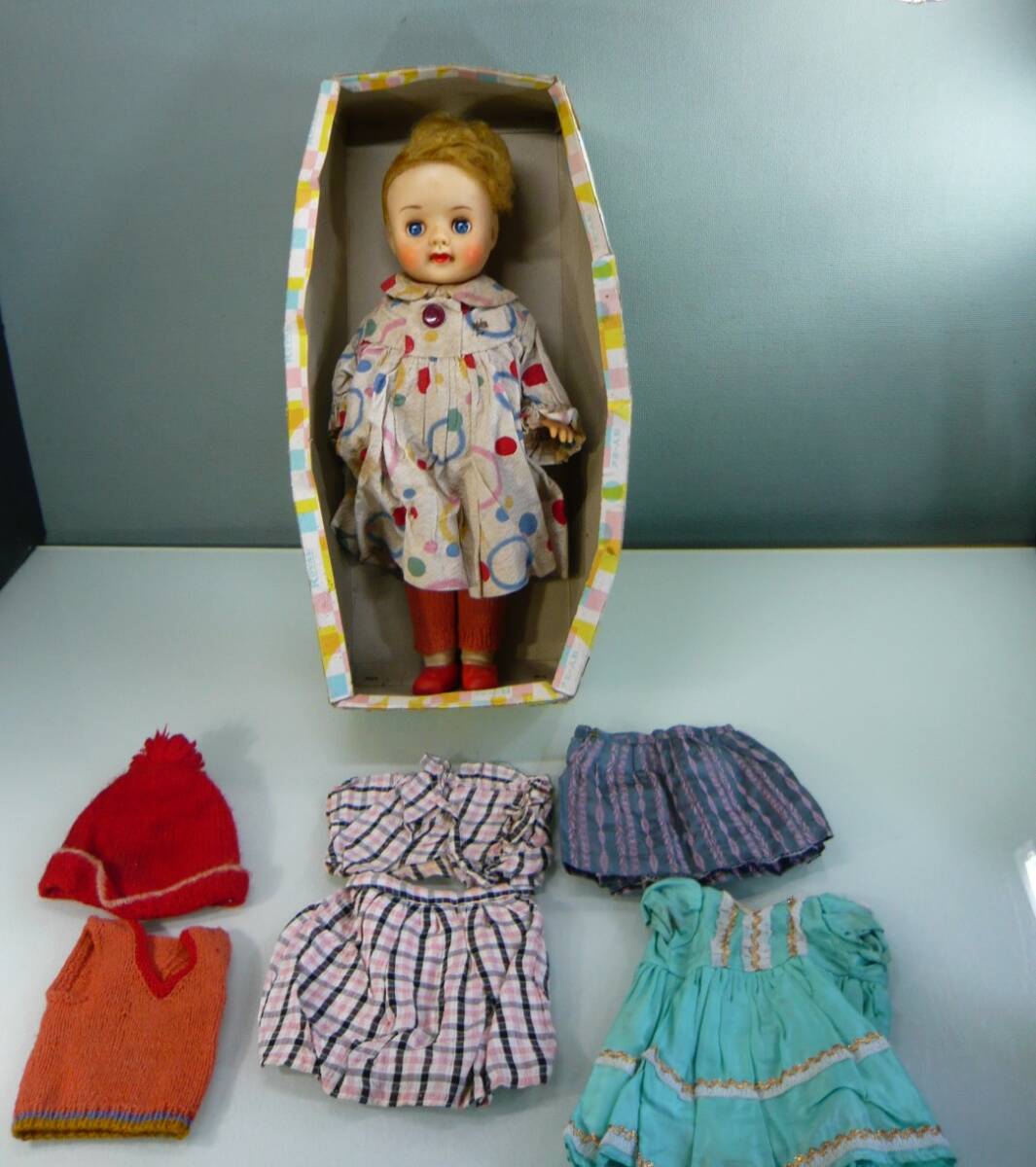 - 昭和レトロ 当時物 レトロドール amie/アミー 人形 共箱付 服ドレス 付 レア アンティーク ヴィンテージ 経年変化劣化 現状品