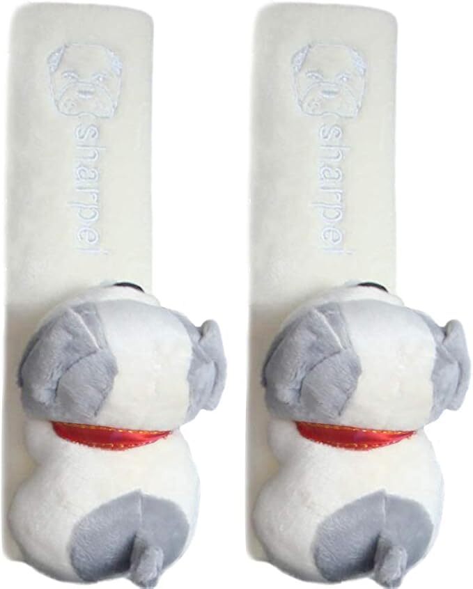 - シートベルトカバー ショルダーパッド 子供 リュック シートベルト シートベルト枕 車用品 キッズ ぬいぐるみ 2個セット グレー 犬