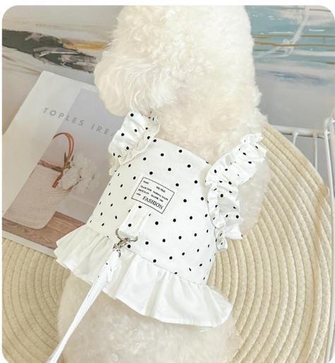 - 犬用ハーネス Mリードセット ドット柄 フリル ワンピース おしゃれ かわいい