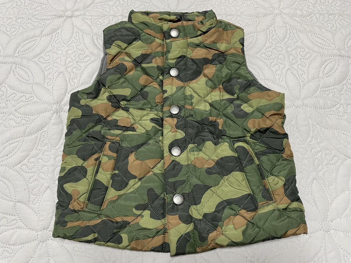 > used◆サイズ 90◆GAP キルト迷彩柄ベスト 裏フリース スナップボタン開閉◆迷彩カーキ