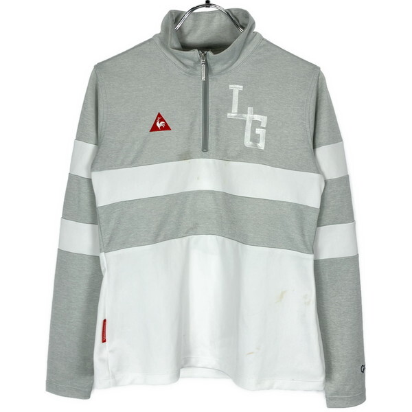 > 古着 レディースM le coq sportif/ルコックスポルティフ ゴルフウェア ハーフジップ シャツ 長袖 スポーツウェア ホワイト/グレー