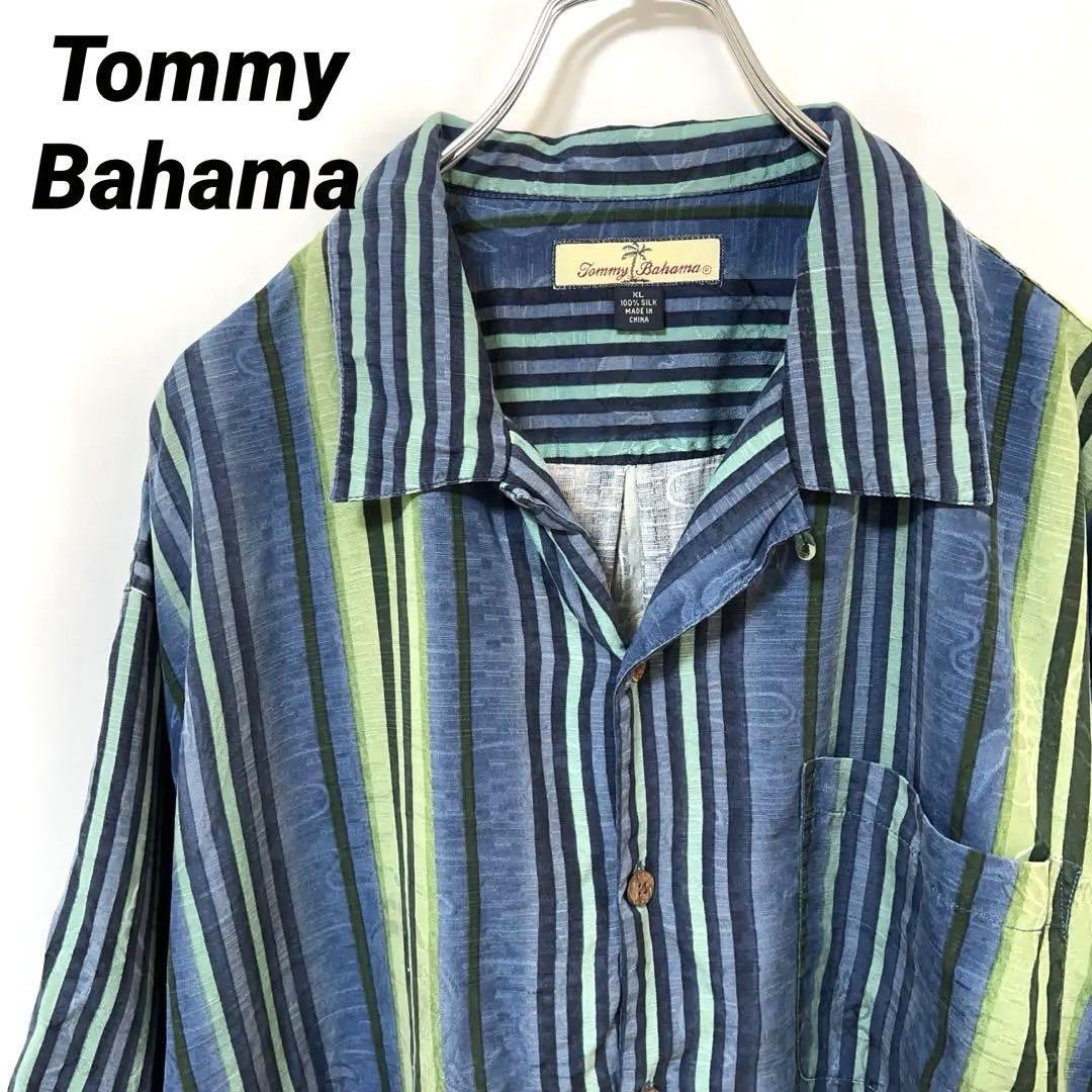- N-5545 Tommy Bahama トミーバハマ アメリカ古着 アロハシャツ ハワイアンシャツ シルク 100% ジャガード 蟹 ストライプ 開襟 半袖 XL