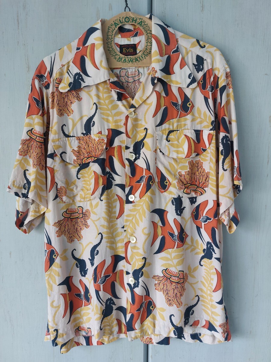 - EVISU エヴィス 初期アロハシャツ 熱帯魚柄 両ポケ 貝ボタン エビス EVISハウスタグ