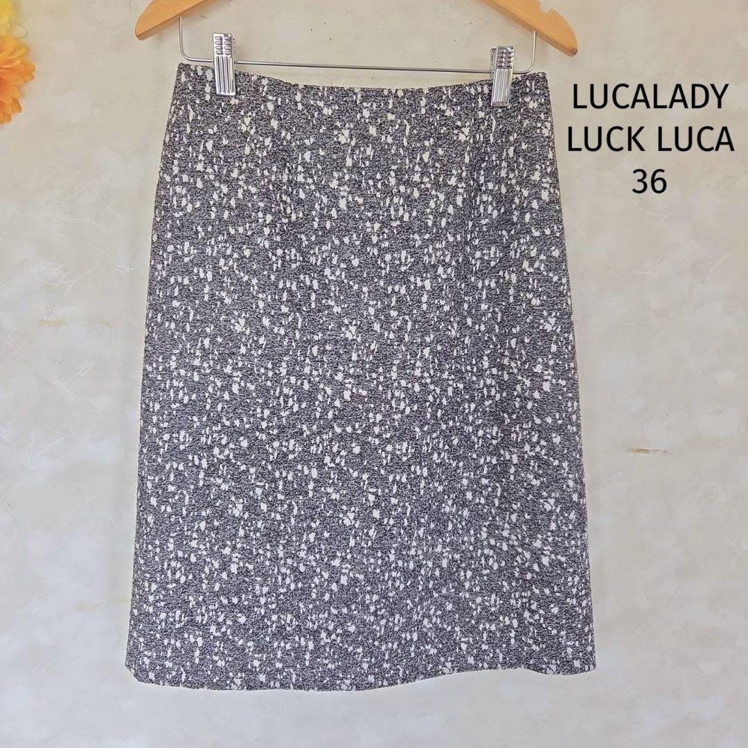 - 美品ルカレディラックルカ タイトスカート 36 総柄 ツイード 膝丈