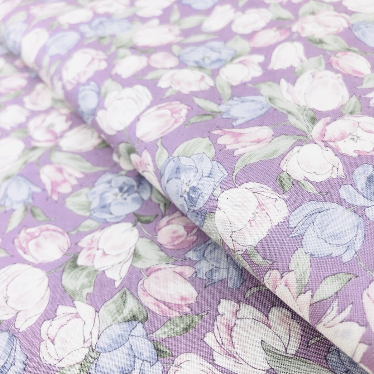 - 1m 日本製 チューリップ スケアー 花柄 はぎれ セブンベリー パープル系 スケア 生地