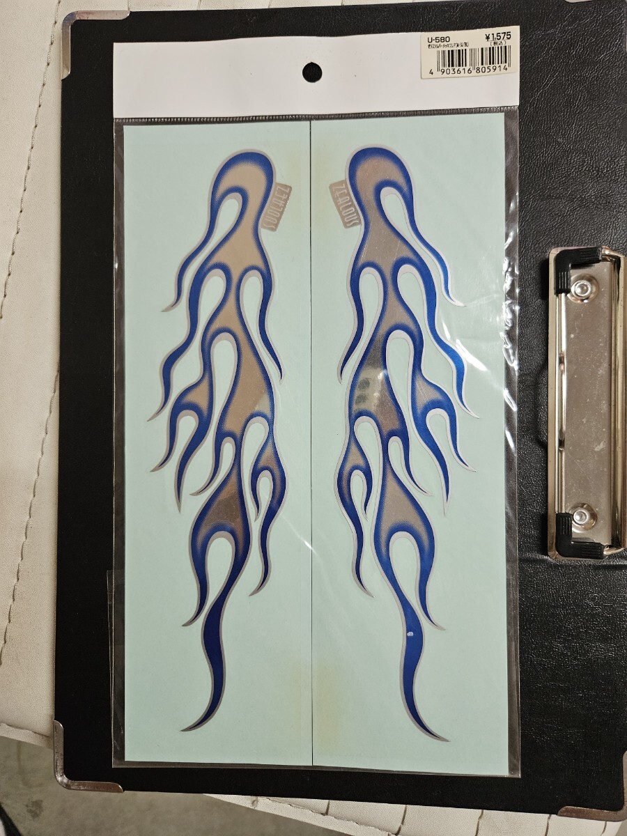 - ファイヤーパターン ブルーステッカー 車両/バイク フレアー 炎 アメ車 USA ハーレー 当時物 ビンテージ 昭和レトロ ファイヤー