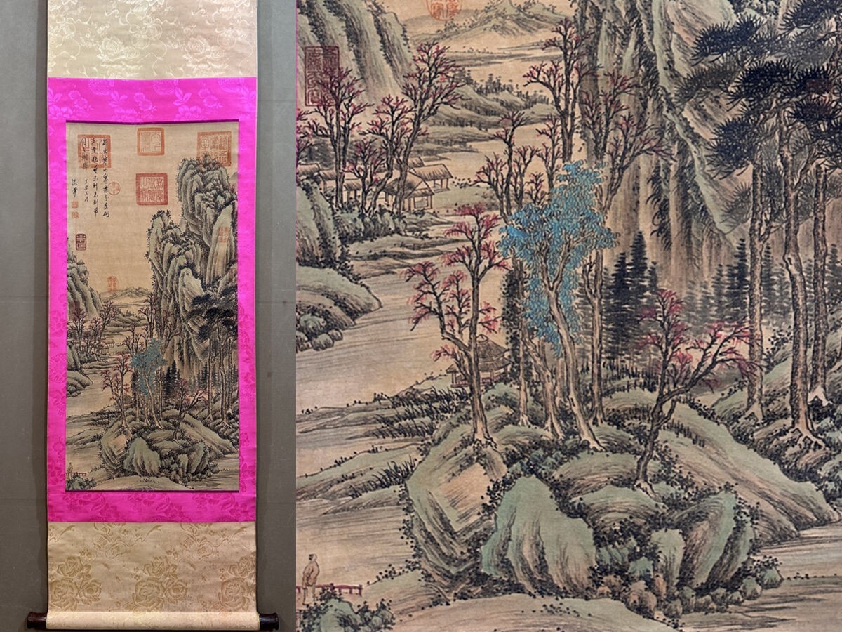 - 中国書画「清 乾隆御筆 山水図」肉筆絹本 掛け軸 墨寶妙品 書画立軸 巻き物 古美術 旧蔵出
