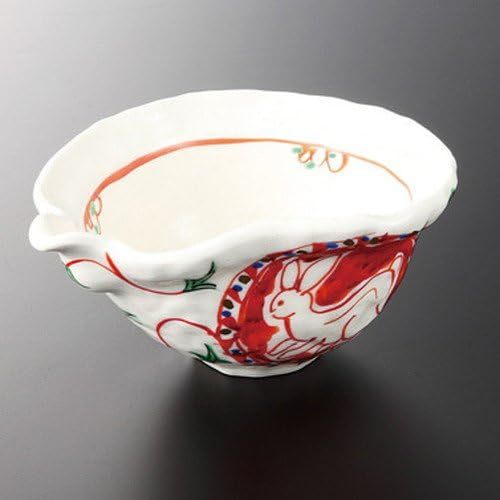 - KM! 美濃焼 ☆志野赤絵丸紋片口鉢☆ 37M095-19 プレート 中皿 ボウル 盛皿 向付