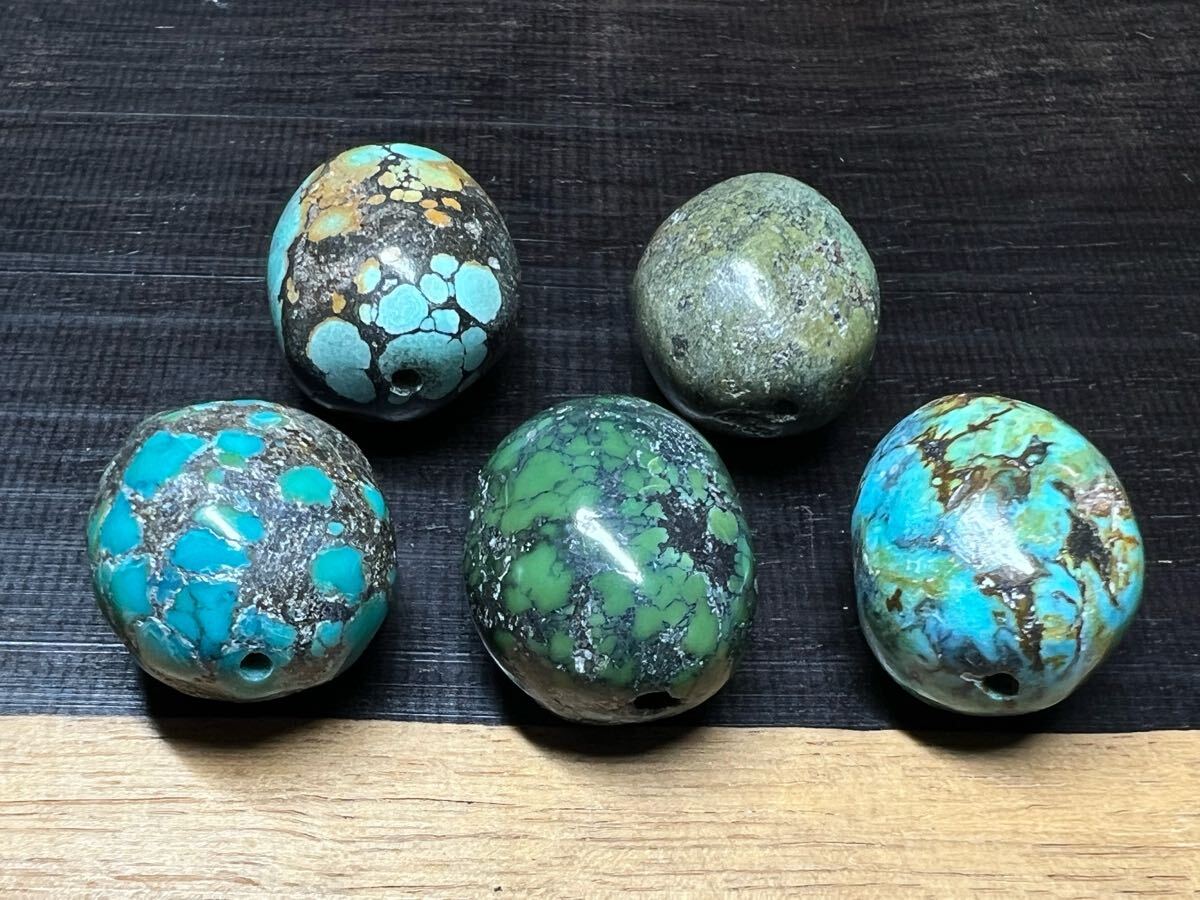 - 極上!アンティーク チベタンターコイズ ビーズ ナチュラル 5点セット トンボ石 天珠 トンボ石 gyu チベット