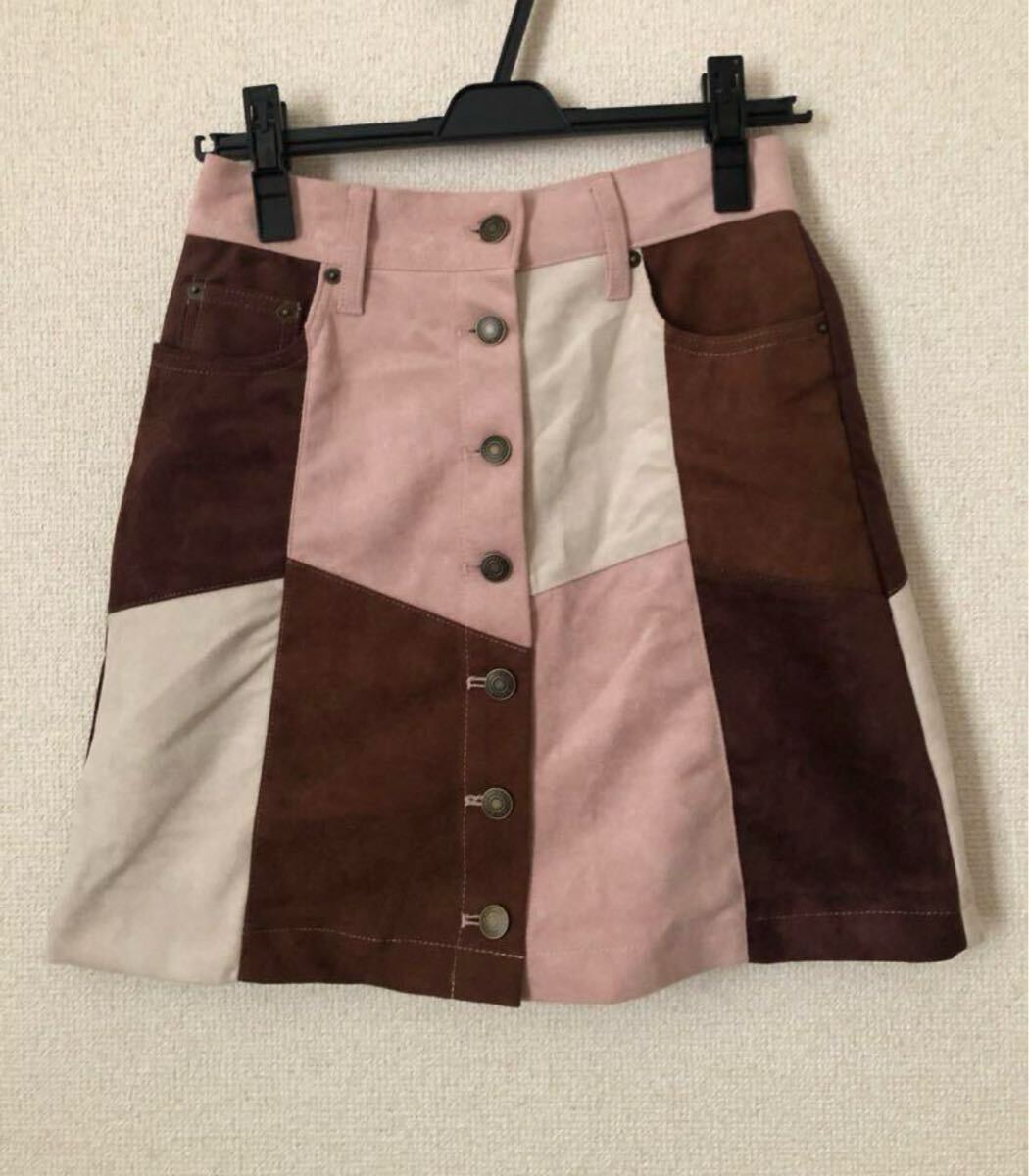 - イング INGNI 台形スカート パッチワーク風 ピンク ブラウン ボタン 春 秋 冬 ミニスカート