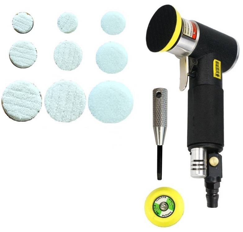 - 小型エアーポリッシャー☆ウールバフ9枚付☆マジックテープ式75mm &50mm