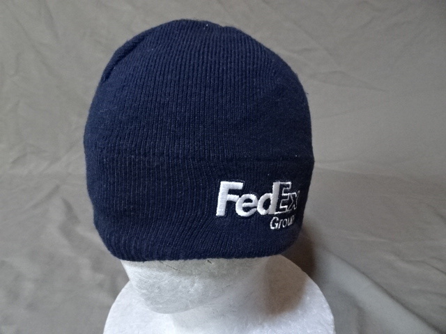 - 激レア USA購入 アメリカ企業モノ 世界最大手 物流サービス フェデックス 【FedEx Gound】 ロゴ刺繍入り ニットキャップ ネイビー 中古品