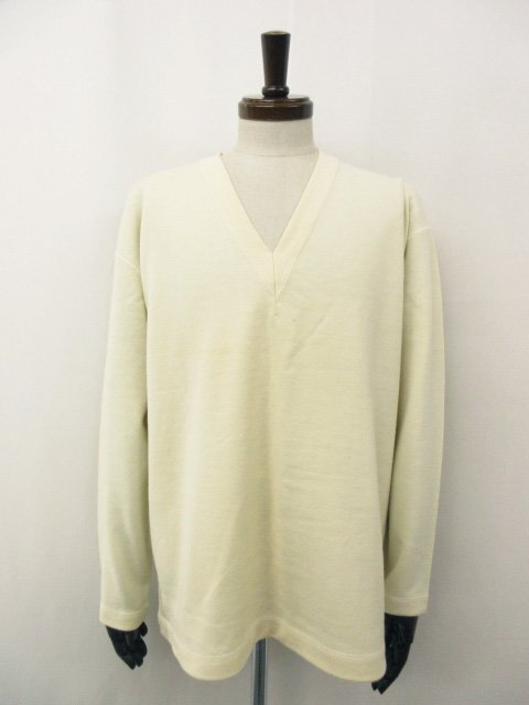 > アーカイヴ 美品【Y's for men ワイズフォーメン】 ウール100% Vネック長袖カットソー (メンズ) L~XL相当 生成り MJ-T42-147◇33MN6073