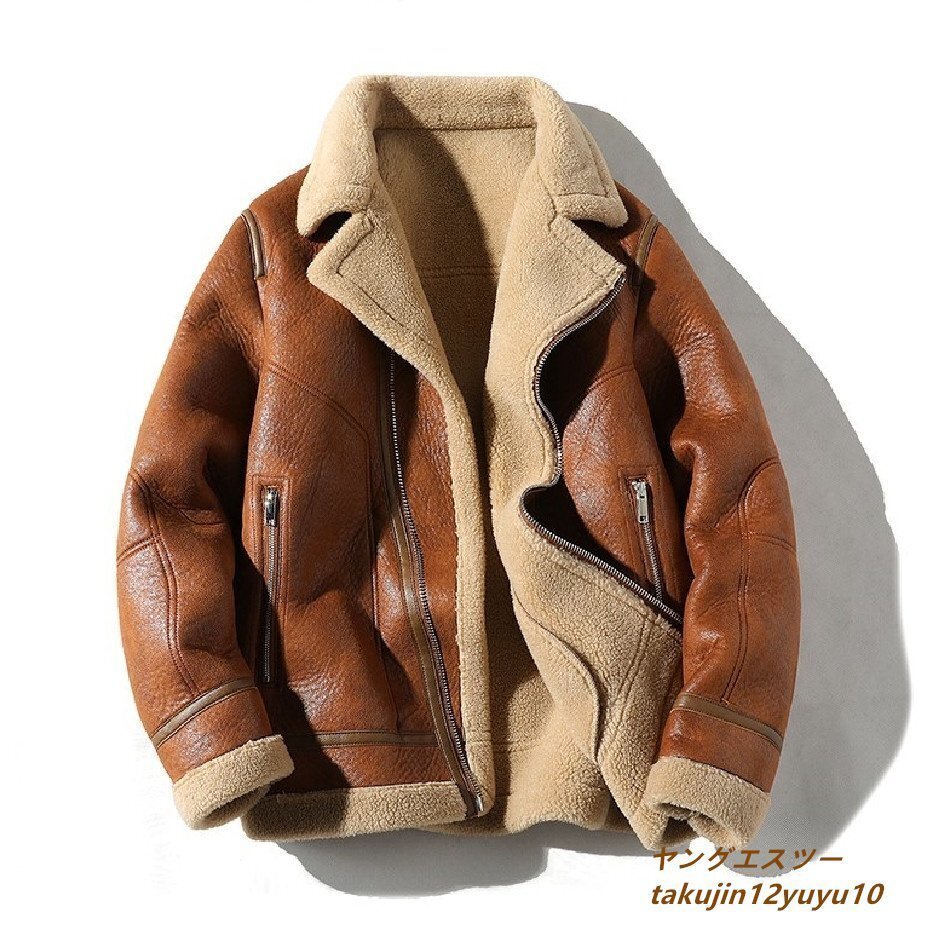 - 最高級 定価13万 ムートンコート 冬新品 ファーコート メンズ ライダース 超防寒 バイクウェア 厚手フライトジャケット上品 ジャンパー M