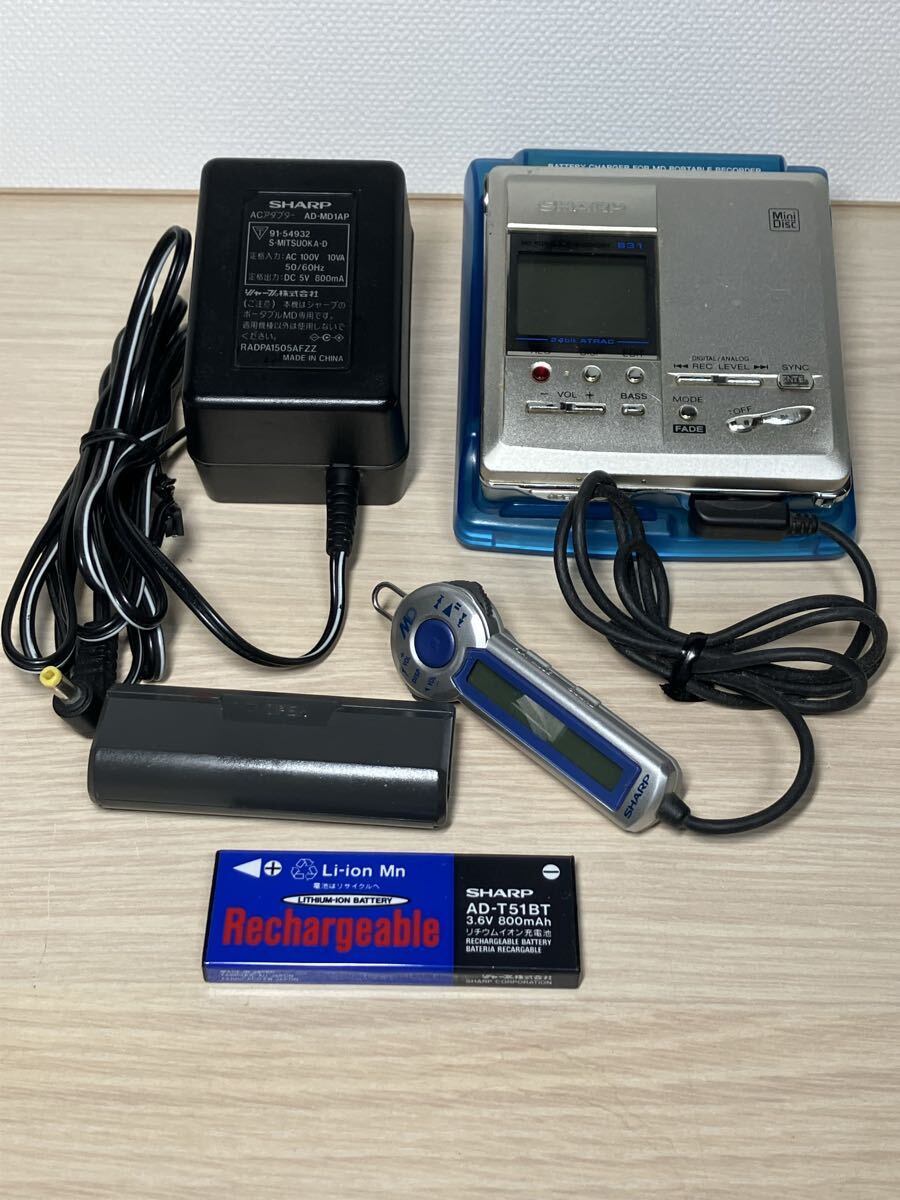 - 【ジャンク】 SHARP MDポータブルレコーダー MD-MT831-S アダプター/充電器付属