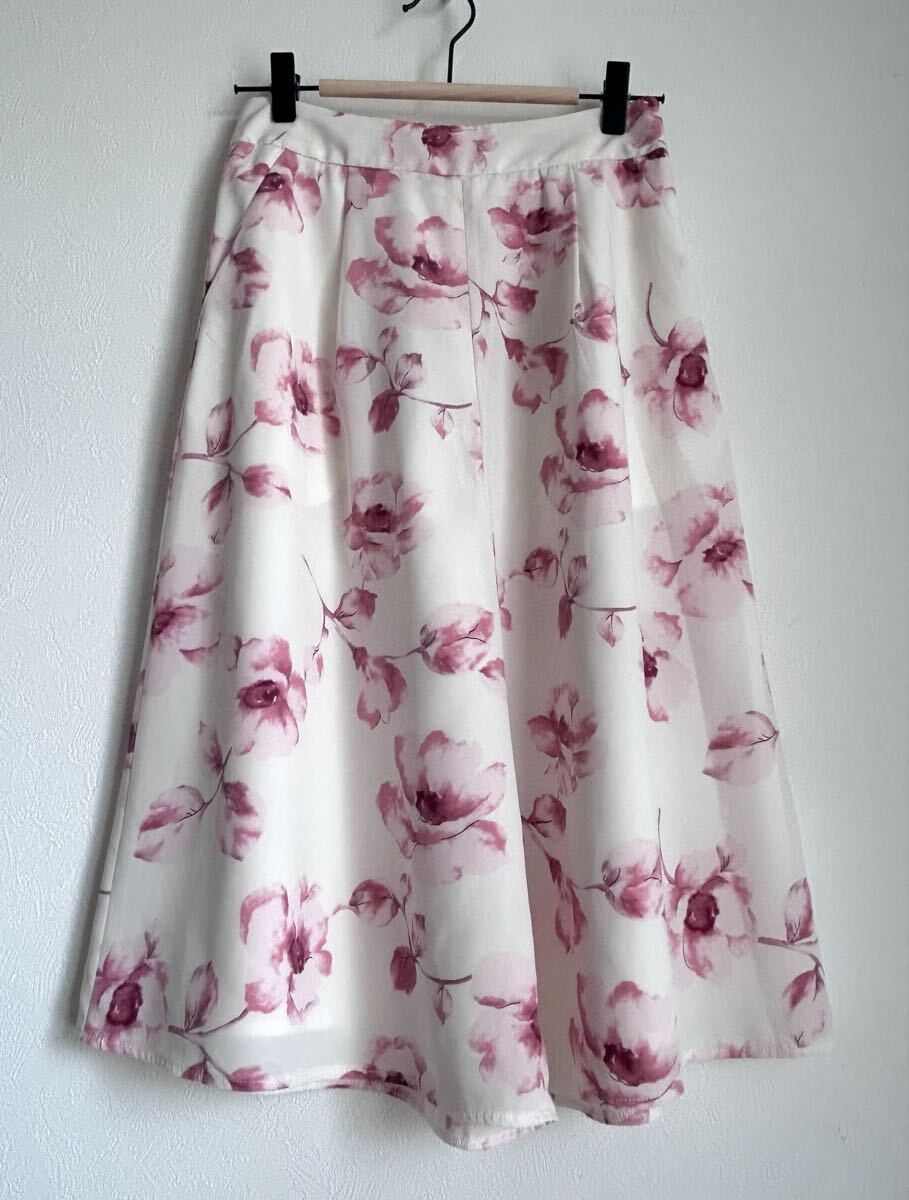 - トランテアンソンドゥモード ガウチョ ワイドパンツ 花柄 オフホワイト 春 夏 秋 ピンク